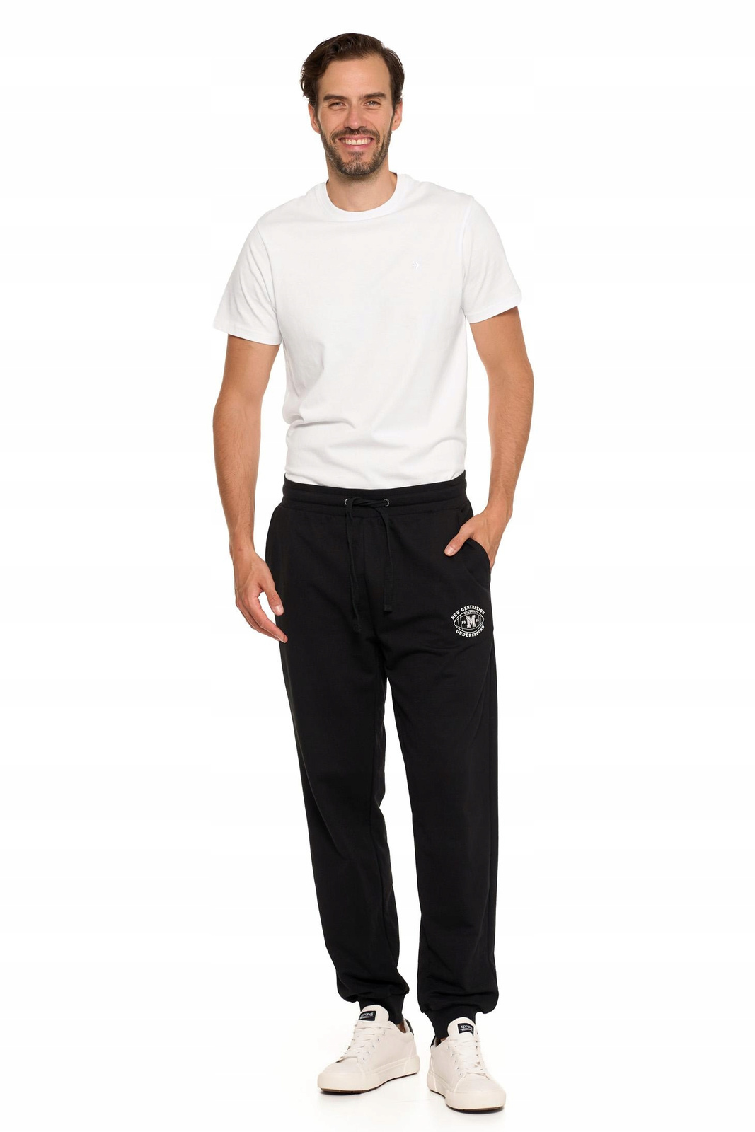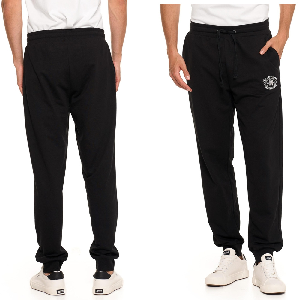 Spodnie posiadają regulację w pasie na sznurek, co umożliwia idealne dopasowanie do sylwetki. Dwie praktyczne kieszenie z przodu sprawdzą się do przechowywania drobnych przedmiotów, a ściągacze na dole nogawek podkreślają ich sportowy charakter. Dodatkowo minimalistyczny gumowy nadruk na lewej nogawce dodaje nowoczesnego akcentu, czyniąc te spodnie doskonałym wyborem na co dzień.