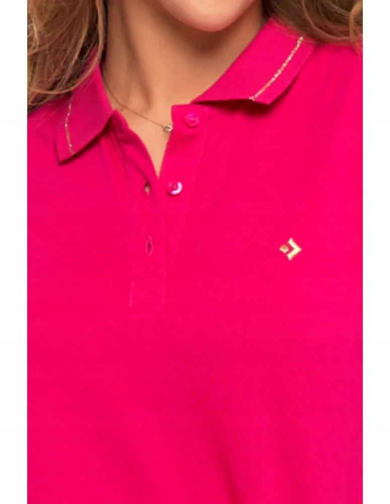 POLO KOSZULKA DAMSKA BAWEŁNA ZŁOTE DETALE PREMIUM RÓŻOWA MODNA MORAJ S