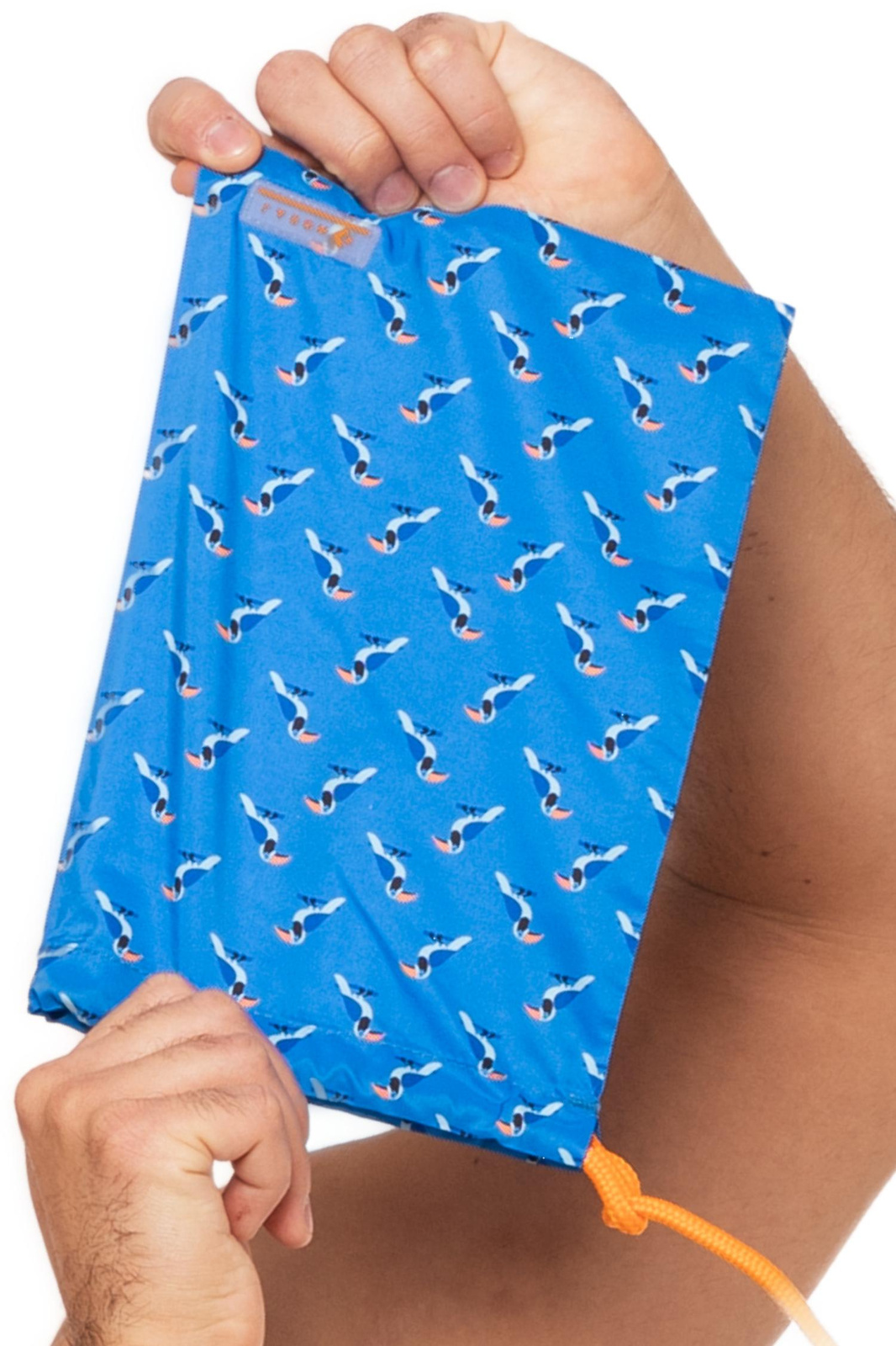☀️ Jako dodatek, spodenki kąpielowe wyposażono w stylowy, dedykowany worek, do którego można je łatwo zapakować. Idealny na plażę, basen czy podróż, ten worek nie tylko ułatwia przechowywanie i transport spodenek, ale także stanowi ekologiczną alternatywę dla plastikowych toreb.